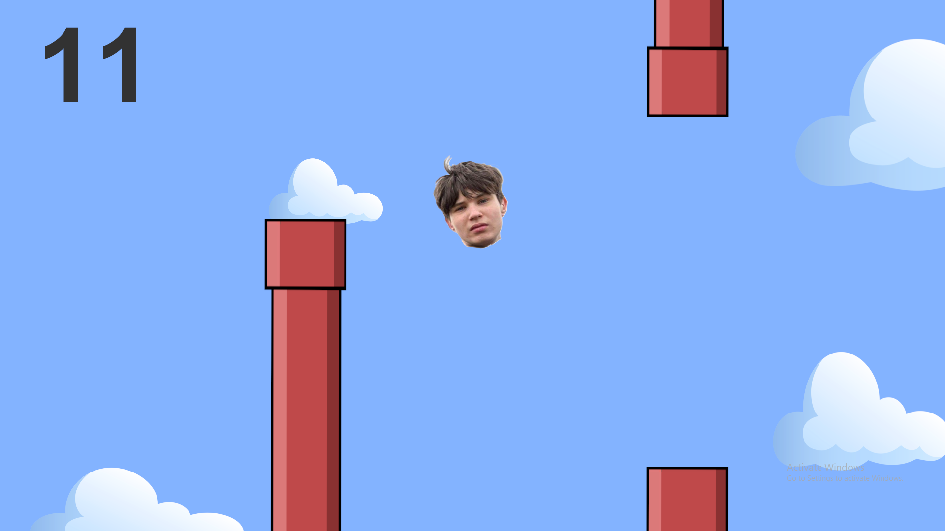 Just a clasic game where a bird (In this game,Alex) has to avoid pipes while heading towards the end (IF there is one). This is my first game that i actually finished it from start to end and i made it because i wanted to make a game that people would play it and laugh because it's funny. I put a few easter egss too and if i see support,I will continue to update the game in the future!